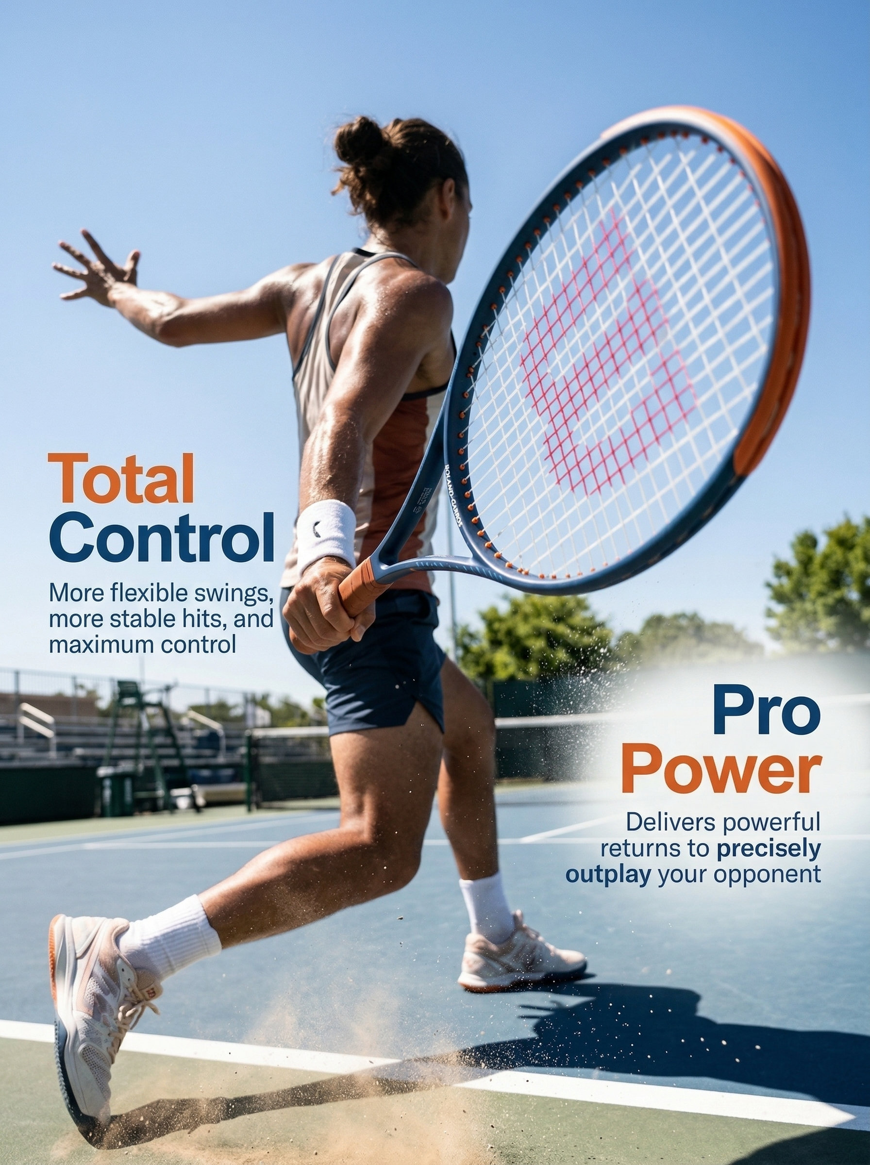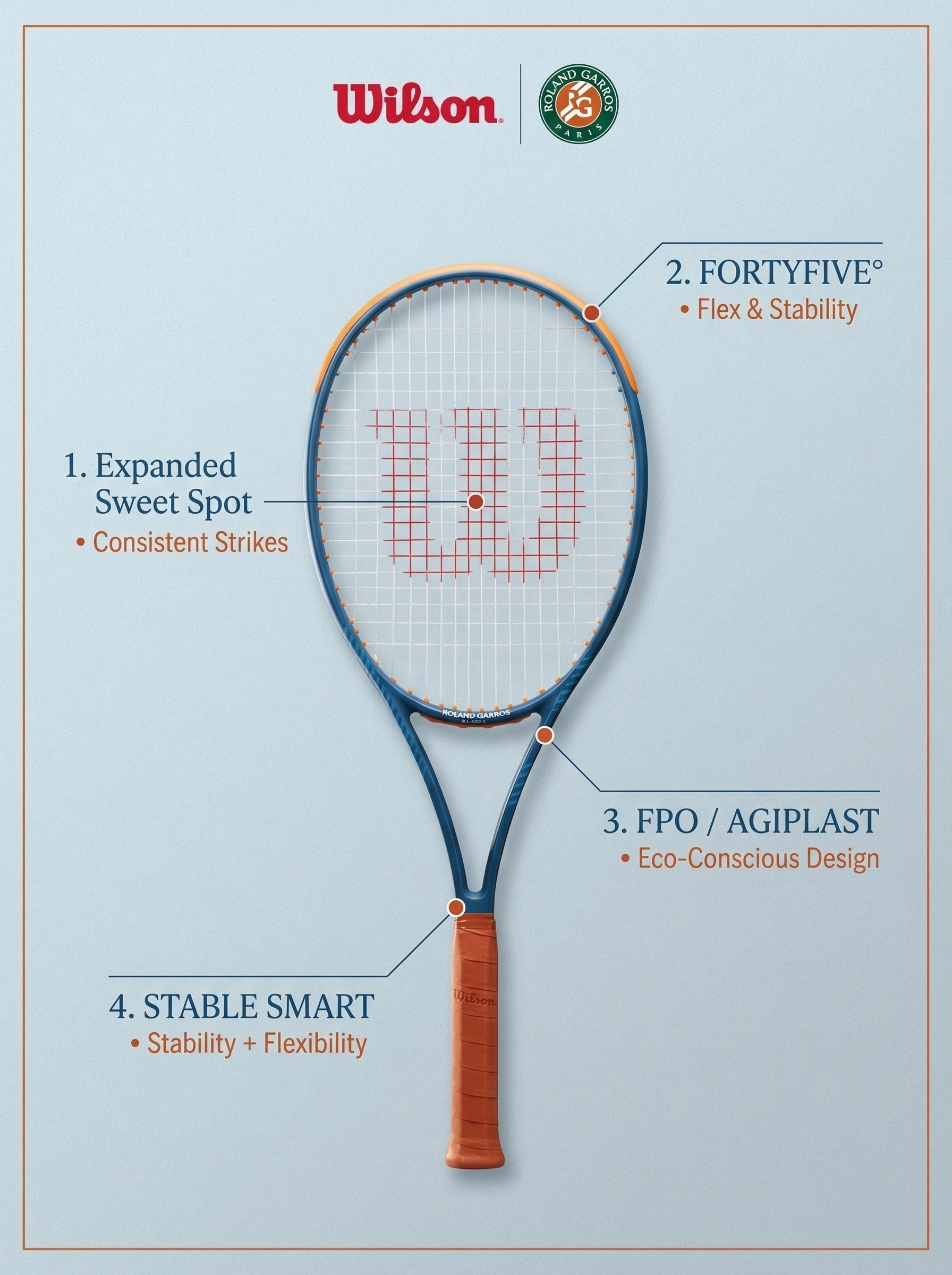 Description 🎾 2024 Roland-Garros Inspired Edition! Blue-orange gradient + red W logo – elegant & court-ready.