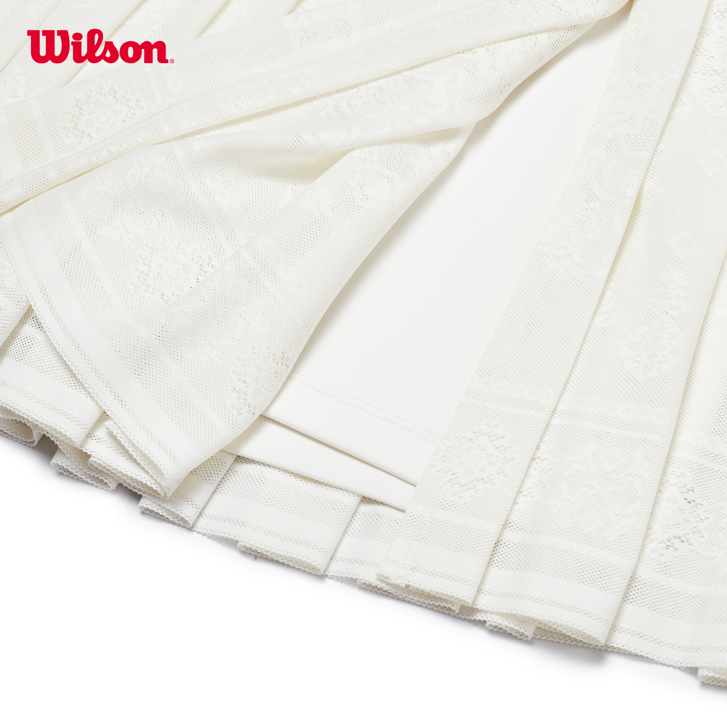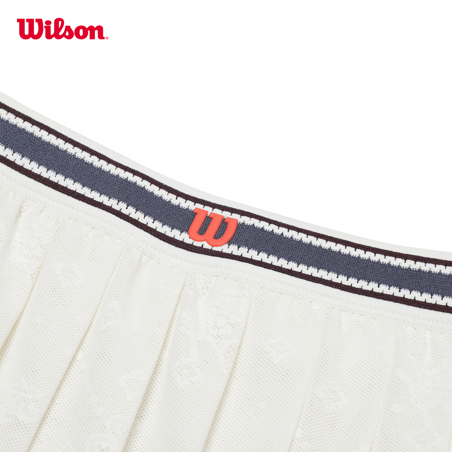 The Wilson Split Pleat Skirt is an on-court tennis skirt designed for confident movement and a clean, elevated look. It features an elasticated waistband with a contrast stripe detail, plus a front split pleat that extends up to the waistband to help maximize range of motion. Wide knife pleats create a structured drape, while the built-in liner shorts add comfortable coverage and include a dual media pocket for essentials. The liner is made with compressive stretch and is designed to wick and dry quickly, using recycled polyester made from plastic bottle waste.